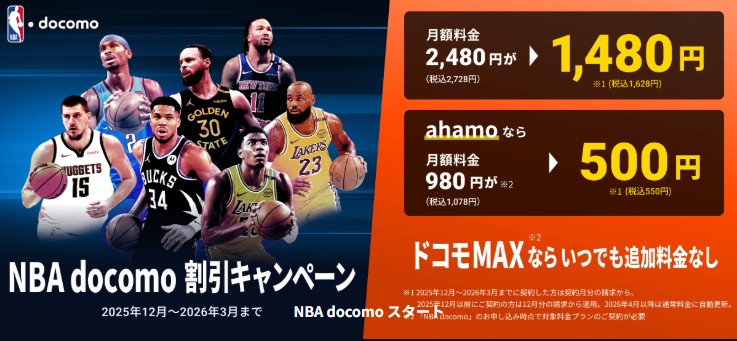 NBA docomoの割引キャンペーンもあるのでぜひチェックしてみてください!
